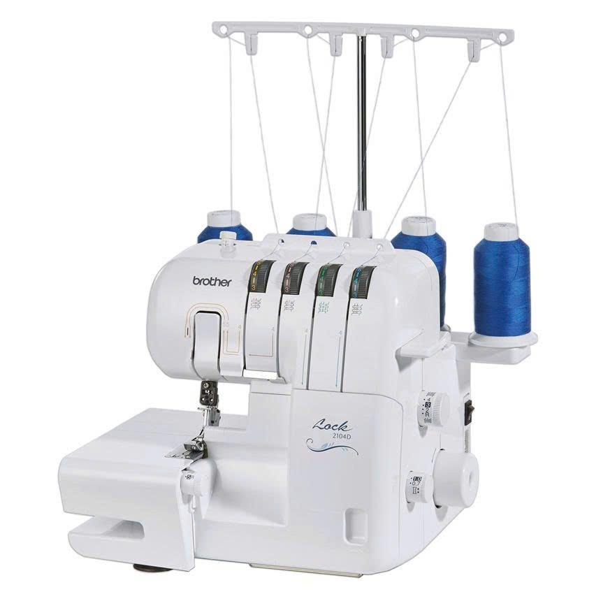 Máy vắt sổ 4 ống chỉ Brother 2104D là loại máy vắt sổ, thường được dùng để bo các cạnh vải tránh vải bị tưa khi sử dụng, giúp các đường may bền, đẹp hơn.