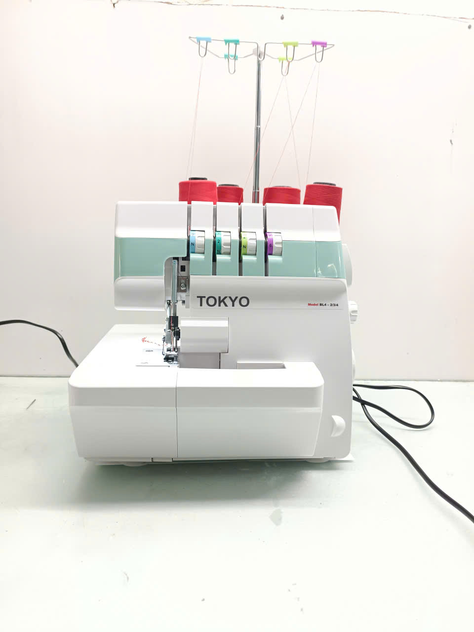 Máy vắt sổ 4 ống chỉ TOKYO BL4-234 được thiết kế các đường dẫn xỏ chỉ với 4 màu khác nhau, nên hỗ trợ xỏ chỉ chính xác.